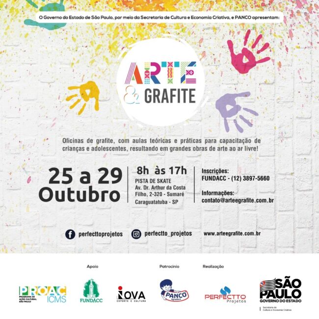 Projeto Arte Grafite chega à Caraguatatuba entre os dias 25 e 29/10/21. A Pista de Skate da cidade será transformada em uma verdadeira tela. Esta é a proposta do projeto Arte Grafite, que tem como objetivo criar obras de arte ao ar livre, para quebrar a monotonia das cidades com desenhos e pinturas gigantes. As…