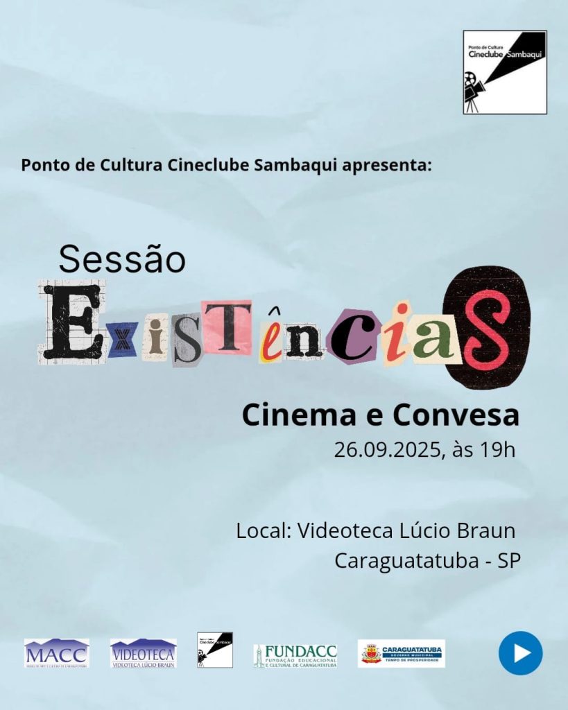 A ‘Sessão ExistênciaS’ tem o intuito de promover um encontro com a diversidade, propondo uma experiência coletiva através do cinema, debate e conversação, integrando as ressonâncias cinematográficas. Cada sessão conta com a curadoria de filmes que retratam as profundezas da existência humana. Após o filme, o bate-papo será sempre mediado por um convidado especial. Saiba mais pela página no Instagram: @cinesambaqui