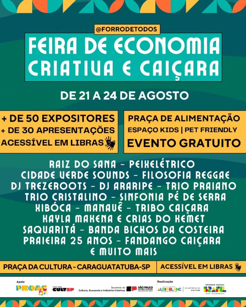 A Feira de Economia Criativa e Caiçara é uma produção do Coletivo Forró de Todos, realizada por meio do Fomento à Economia Criativa da Secretaria da Cultura, Economia e Indústria Criativas do Estado de São Paulo, e conta com o apoio da Fundacc – Fundação Educacional e Cultural de Caraguatatuba e da Secretaria de Turismo de Caraguatatuba.