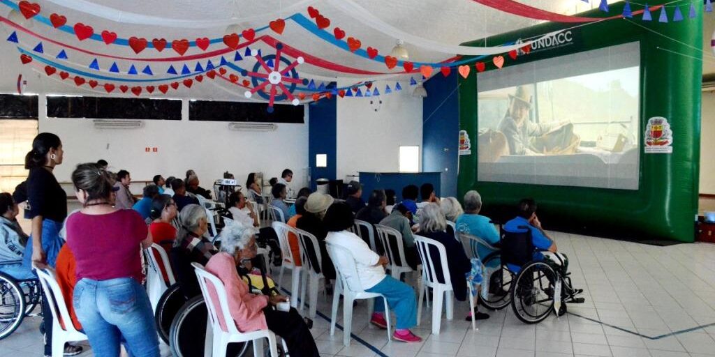 O projeto Cinema nos Bairros é promovido pela Fundacc – Fundação Educacional e Cultural de Caraguatatuba e busca desenvolver ações temáticas, além de proporcionar cultura e entretenimento aos munícipes.