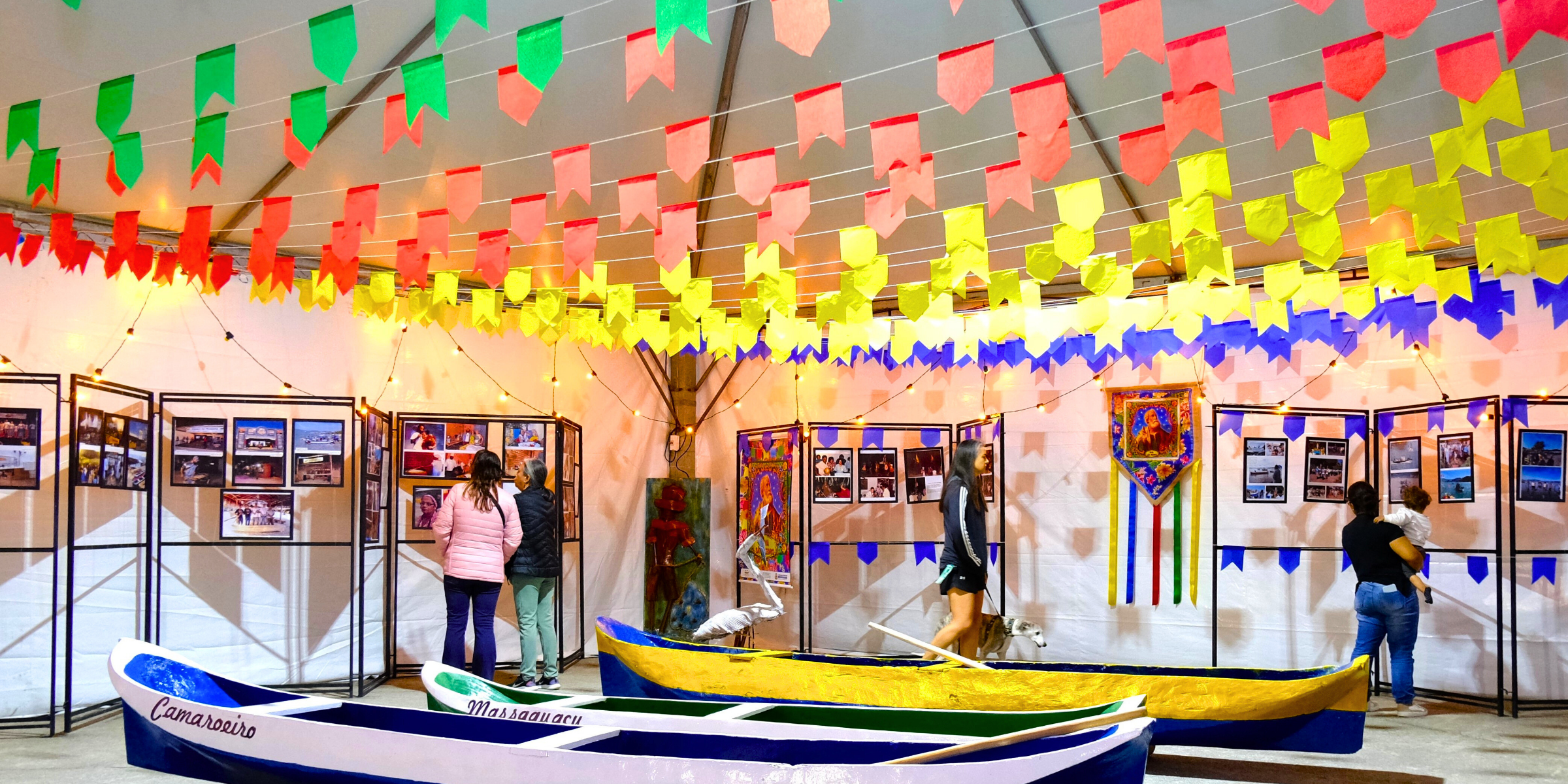 Até o final do evento, sempre das 12h às 22h, o público poderá prestigiar as exposições “Viva São Pedro” e “Festival do Camarão – Patrimônio Humano”. A primeira mostra apresenta uma seleção de registros fotográficos das festas de São Pedro desde a década de 70, que ocorria na casa do festeiro Sebastião Isidoro, no período da noite. Segundo a historiadora Denise Lemes, se tratava de uma festa tradicional do Santo, realizada após a procissão noturna, com bebidas, vinho quente e comidas, tudo gratuito.